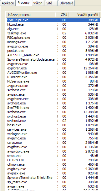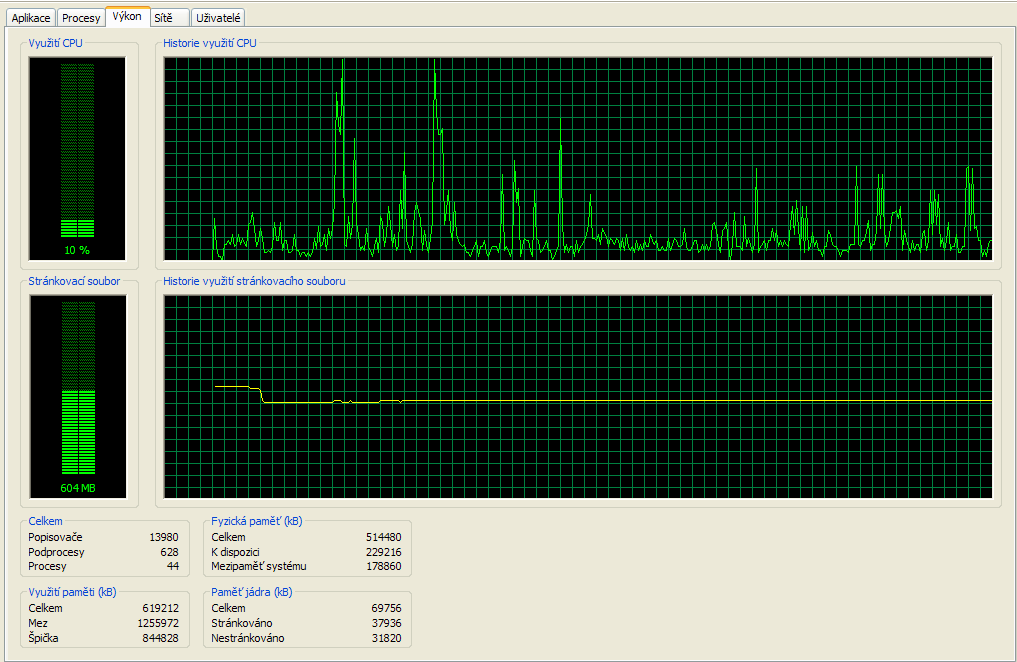Takže posílám screeny Taskmanageru z doby, kdy počítač fungoval rychle a poté pomalu.