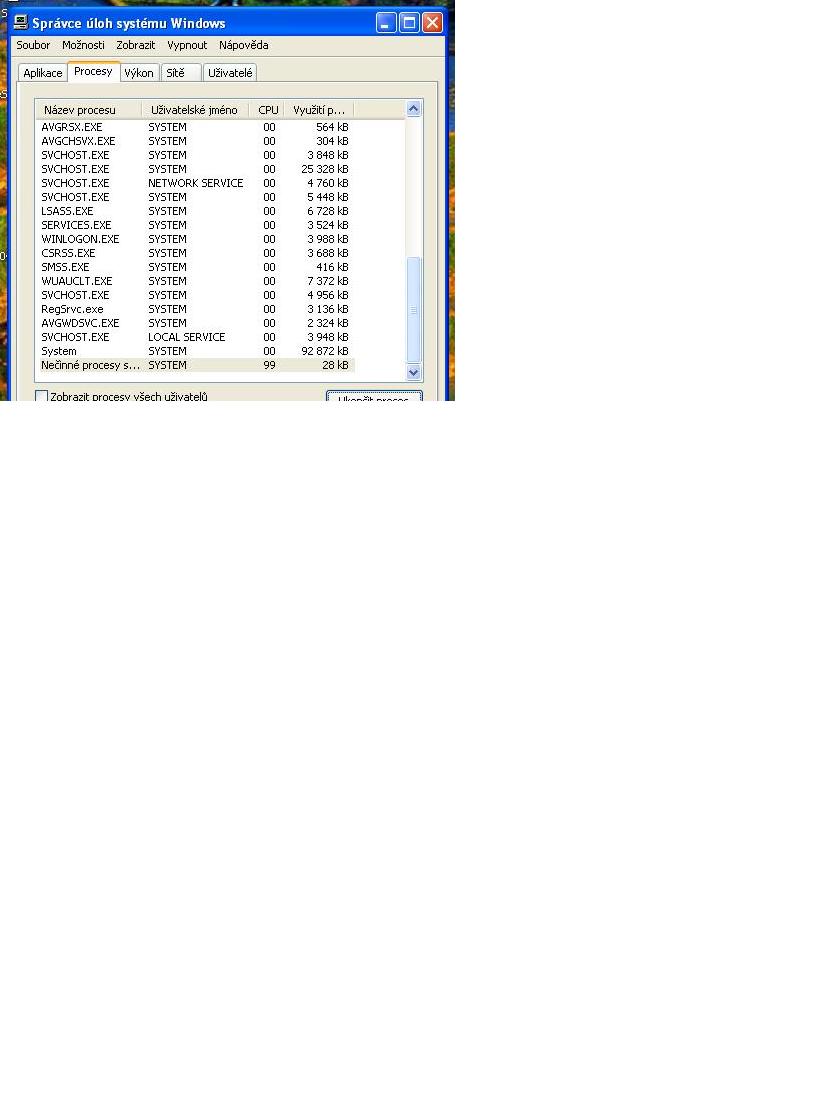 Jeslti myslíte rezidentní štít, tak ten jsem právě aktivoval, to AVG jsem totiž nainstaloval nedávno. Ve "správci úloh" se ale pořád zobrazuje "nečinné procesy 99% CPU", posílám na sreenshotu. Díky