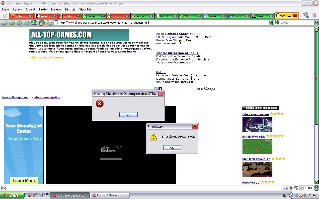 na ktorej sa namiesto hry spustila oinastalacka shockwave aplikacie automaticky.