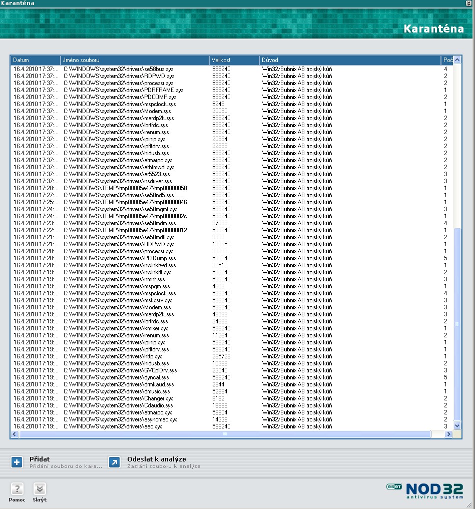 V karanténě NODu soubory již dlouho. Projev byl pouze "PC hlemýžď"