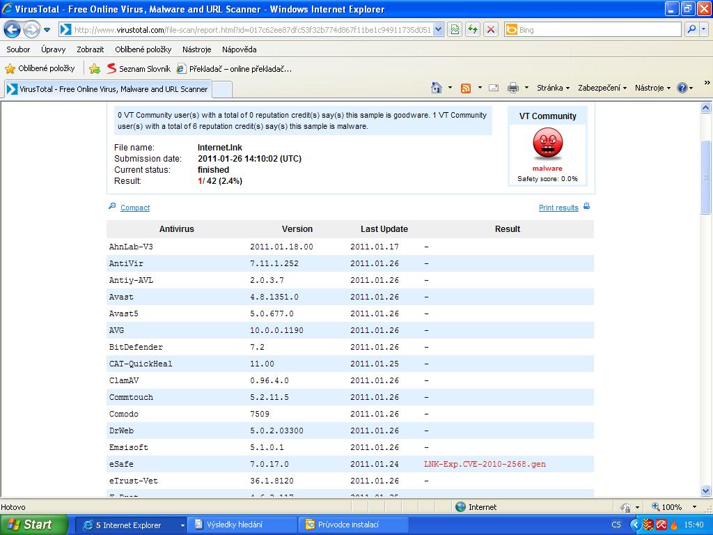 A kde ho vůbec uživatel má uložený.cernohous13 píše:docela rád bych viděl kam ten neškodný "Internet.lnk" vlastně odkazuje