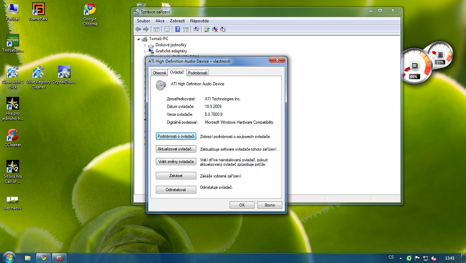 Jediné co tam máte nainstalované, je ovladač zvuku pro HDMI (zvukový čip na grafické kartě nebo desce, pro HDMI výstup)