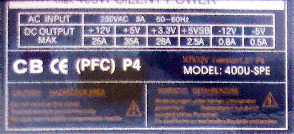 CB C€ (PFC) P4 MODEL: 400U-SPE