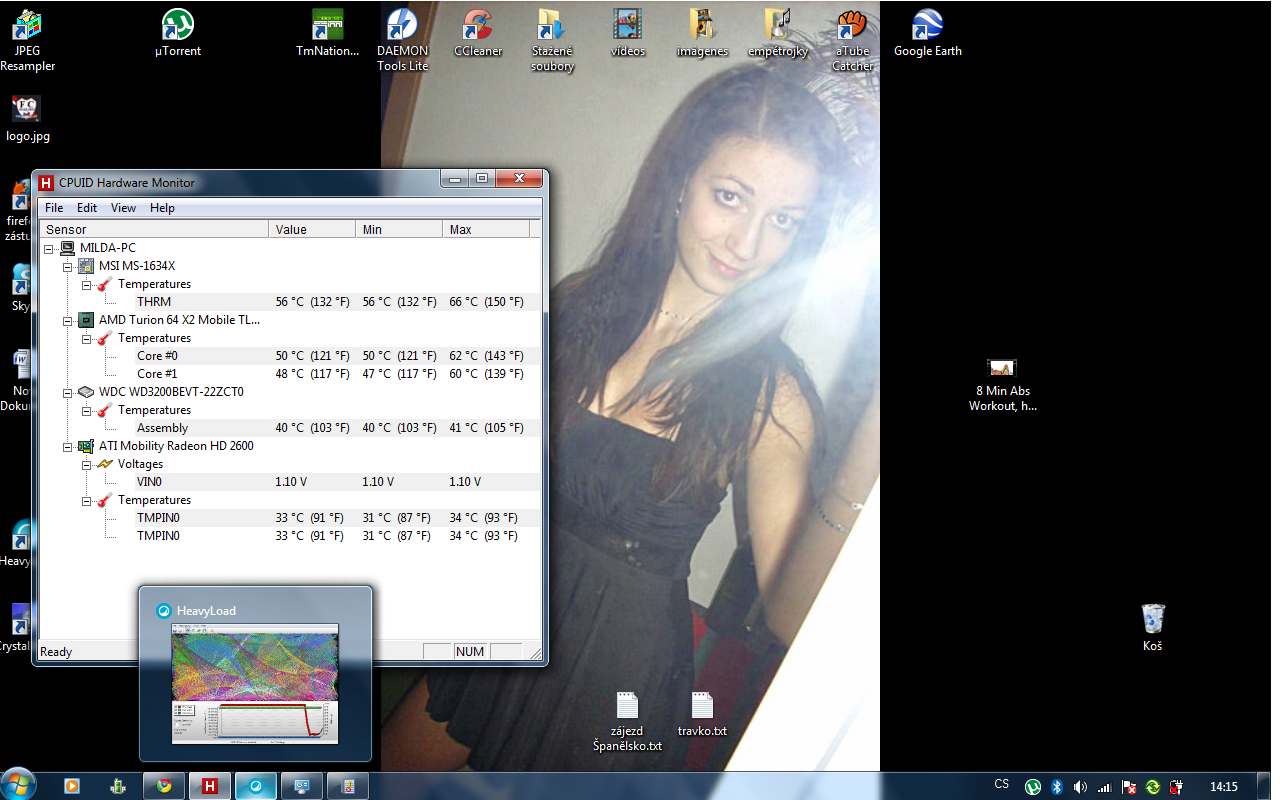 Obojí nechte běžet tak 15minut a pak udělejte screen plochy s Hardware Monitorem. Ten nám sem hoďte