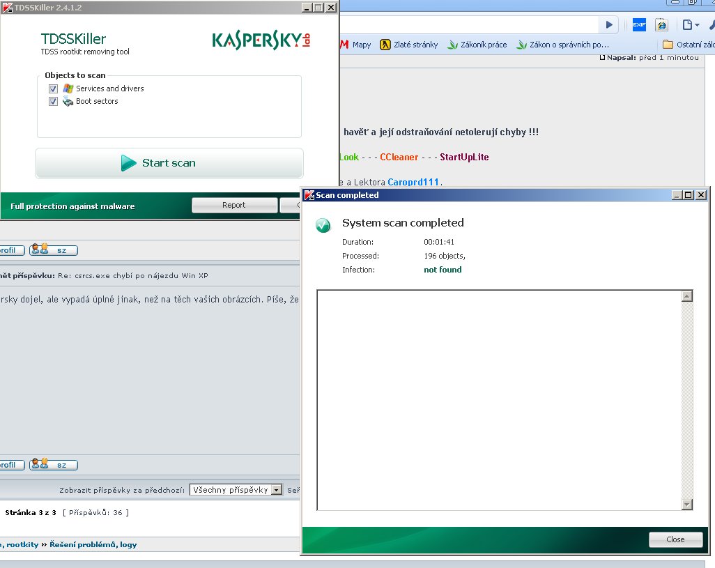 • V pripade leveho okna: PC je ciste a staci stisknout libovolnou klavesu jak TDSSKiller nabizi