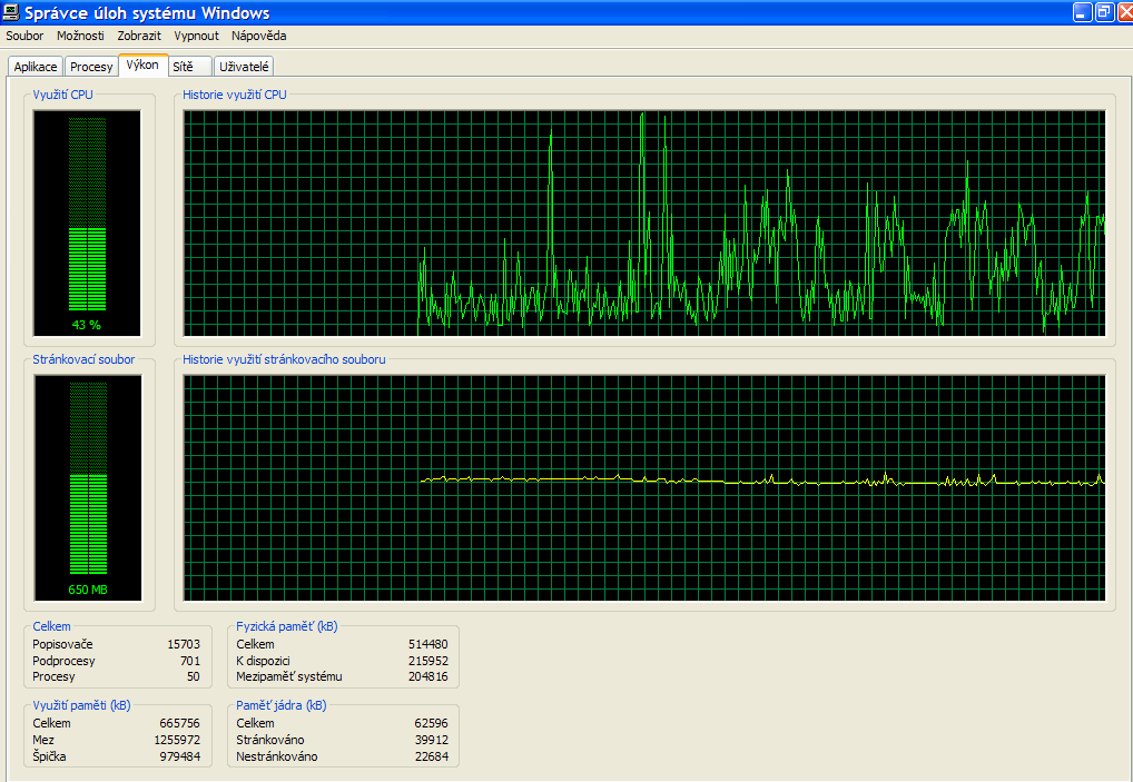 Takže posílám screeny Taskmanageru z doby, kdy počítač fungoval rychle a poté pomalu.