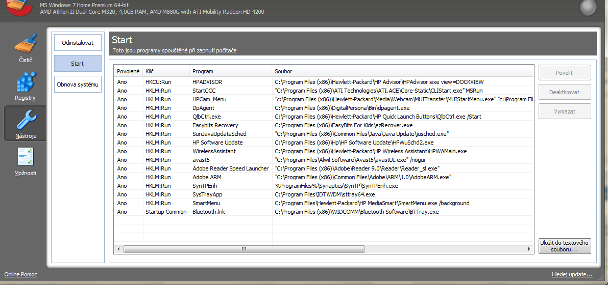 Ahoj, mám prosbu. Koupil jsem si notebook, ale když ho zapnu je tam příliš spuštěných programů, který si myslim, že sou tam k ničemu. Proto se Vás chci zeptat co mohu vše vypnout v programu CCleaner.....posílám zde screen....dík moc