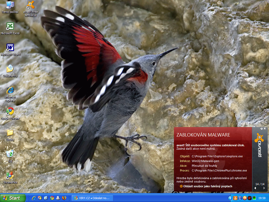 potřebuji rychle poradit. Nějak se mi do pc dostal virus. Ze začátku to hlásilo něco jako drwtsn32,vznikla chyba a je aplikaci nutné zavřít, nepamatuji si to. Přešlo to k tomu, že jsem rychle otevřel vyhledávač a task manager a žádná chyba se najednou neobjevila. Tak jsem narychlo nainstaloval avast a teď to píše: