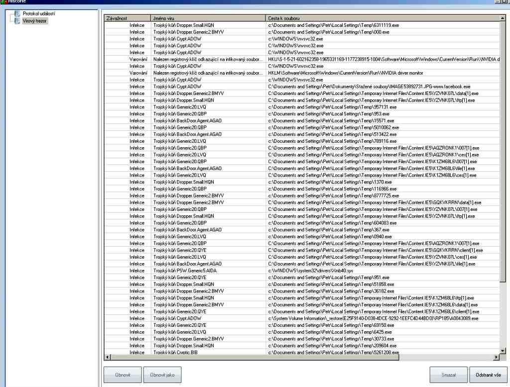 Ve složce "Temporary Internet.." se mi každý den oběví desítky nových "ikon" s názvy jako Taiwan, China....a to je asi špatně. Nacházelo to (viz obrázek) velké množství Trojských koní. Vše minulé tři dny. Dnes již nic,..Mimo chdu AVG se nijak jinak zatím na PC neprojevuje "zavirování"