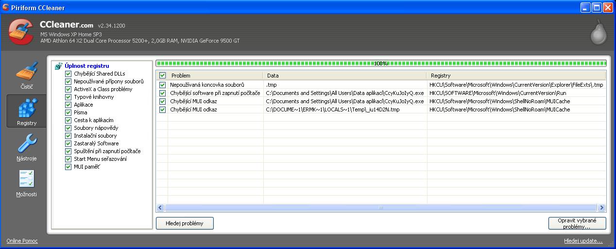registry nechte opravit...pokud jste již v minulosti používal CCleaner pak víte, že se před opravami registrů