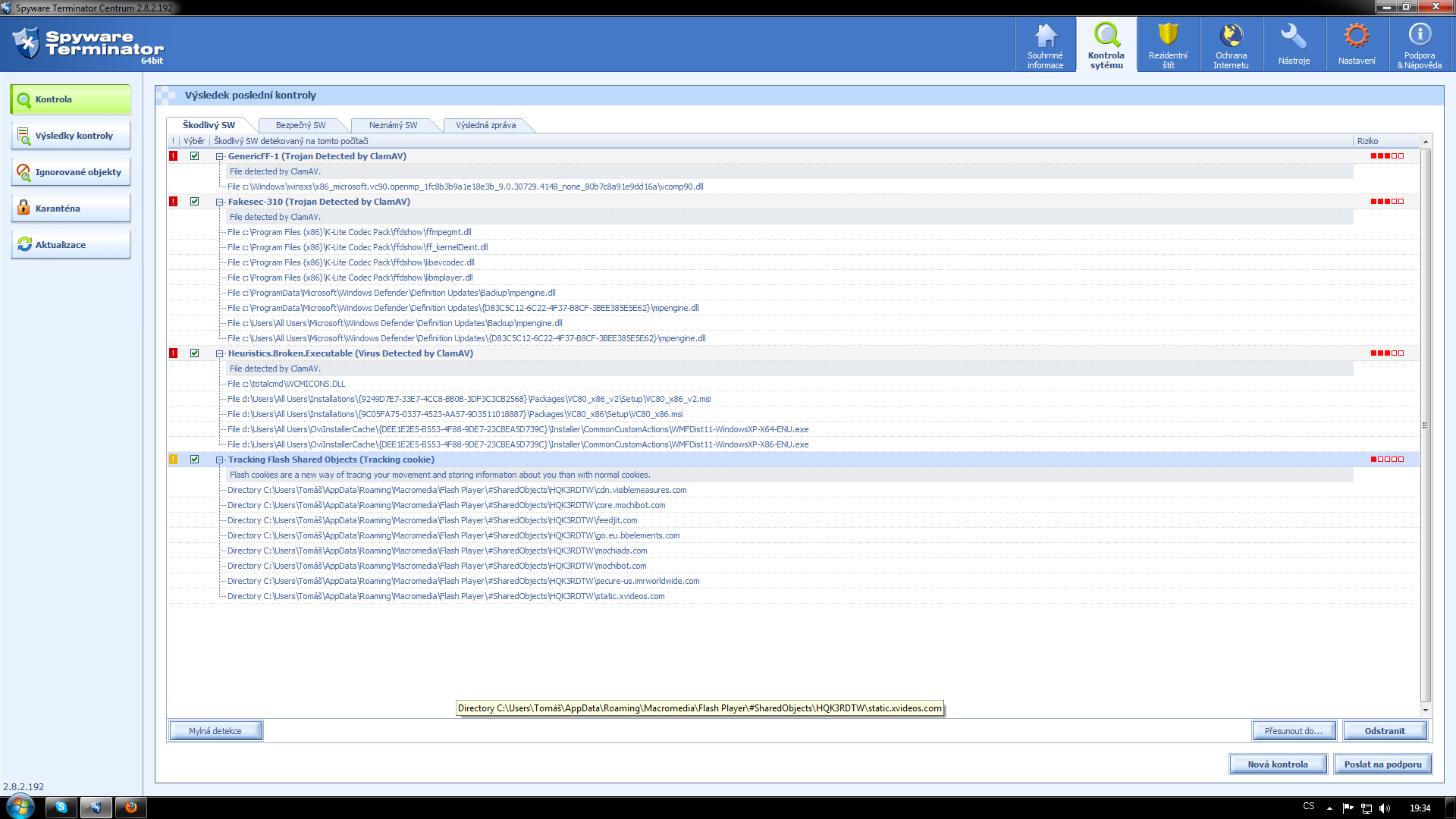 Doporucuji pouzivat spyware terminator vyhradne nainstalovan BEZ ClamAv, tj. jen jej