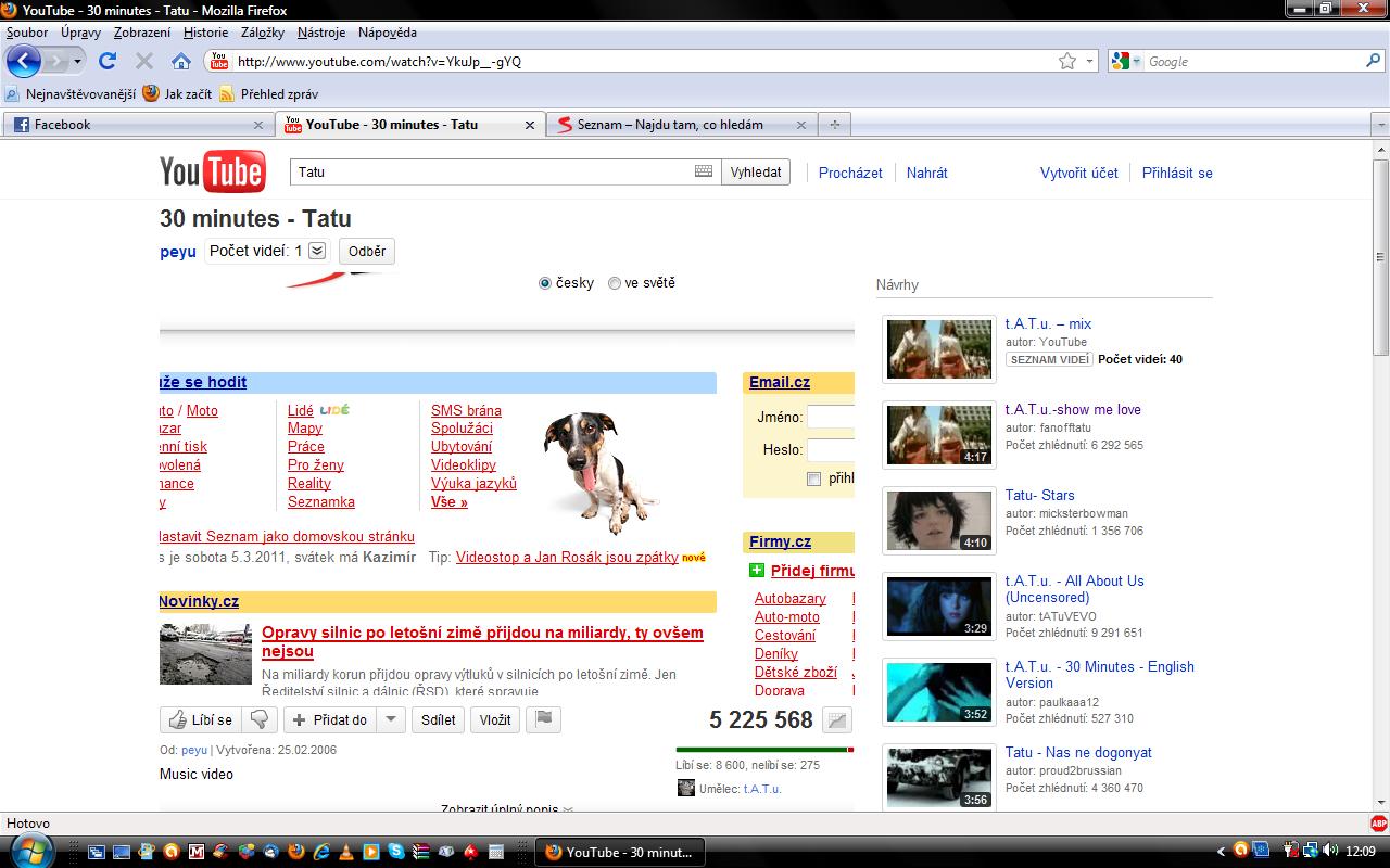 Zdravím lidičky... Mám problém s prohlížečem, jak s Firefoxem tak i s Explorerem. Když si pustím na YouTubu hudbu a překliknu na lištičku (např. Seznam.cz) tak se mi Seznam.cz ukáže na YouTubu. Není to u každého videa, ale jenom u některých (Vždy u těch samých. Tak nevím kde je problém... Jestli v prohlížeči, nebo mám v počítači nějakého šmejda, nebo blbne YouTube. Děkuji za odpověď. :worship: