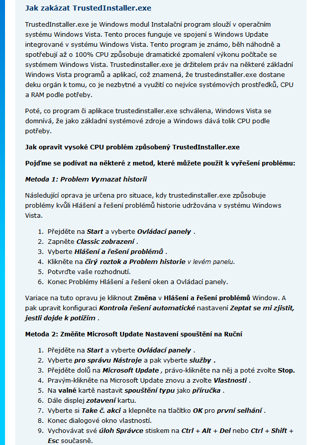 Nejde to ani podle jedné metody, protože nemám visty, ale 7 a Microsoft update, tam není. To ale nevadí trustedI. už ram není. Teď se to zastavili na 44%.