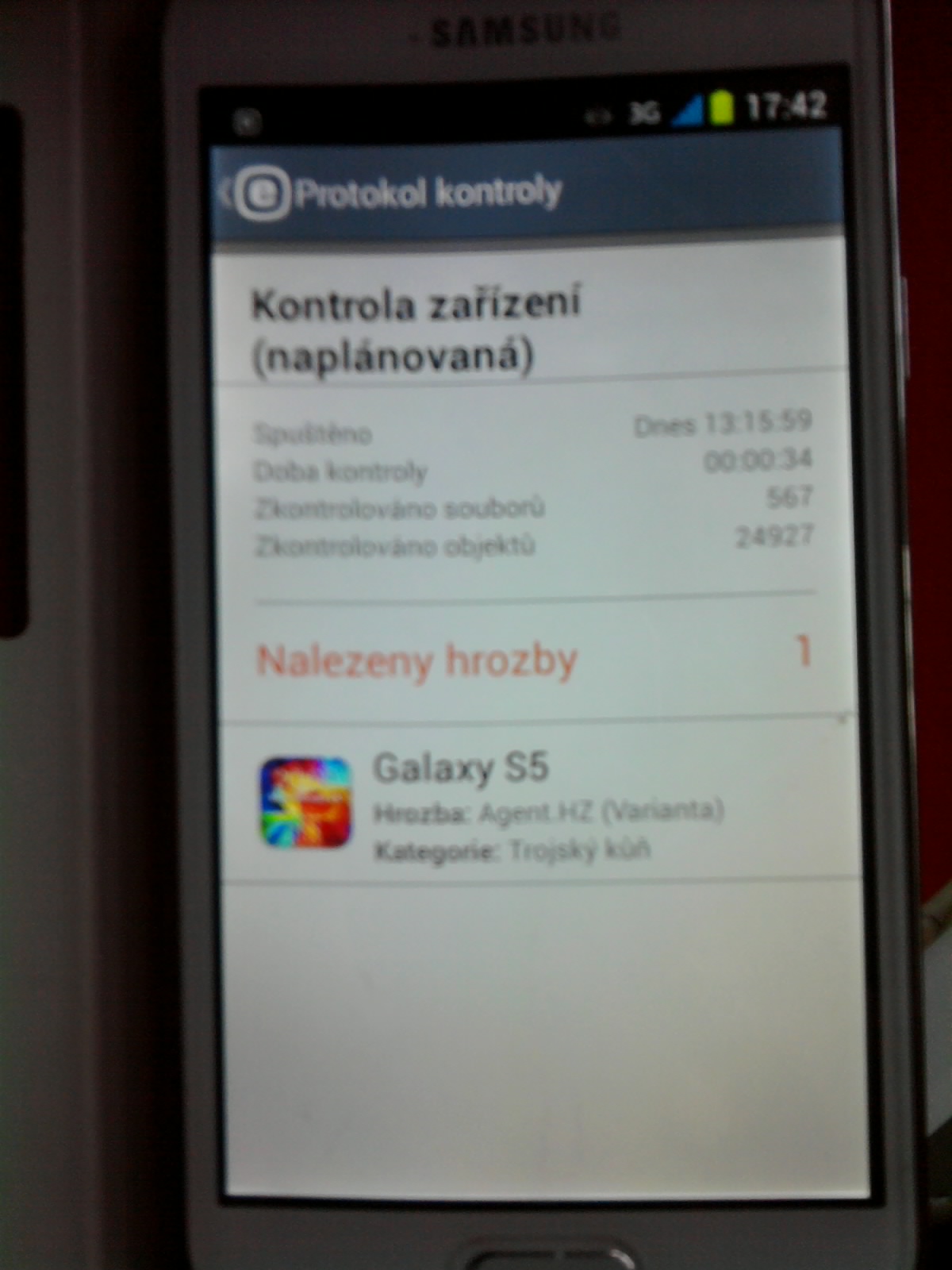 můžete sem vložit screenshot upozornění, které ESET Mobile Security zobrazuje, abychom věděli, v jaké aplikaci či souboru je nákaza hlášena? Jaký máte typ telefonu?